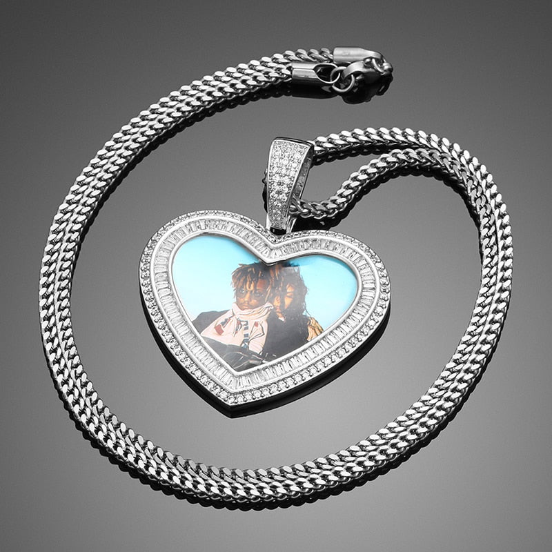 Custom Heart Shape Photo Medallion Necklace is the most loved new trend as it allows you to memorialize your favorite photo into a piece of jewelry you can wear every day. This custom Hip hop photo necklace is specially designed for the hip-hop lover. Photo Medallions necklace is the perfect heart-shaped pendant for your favorite photo. Our personalized necklace with your special moment is always the best gift for your loved ones.