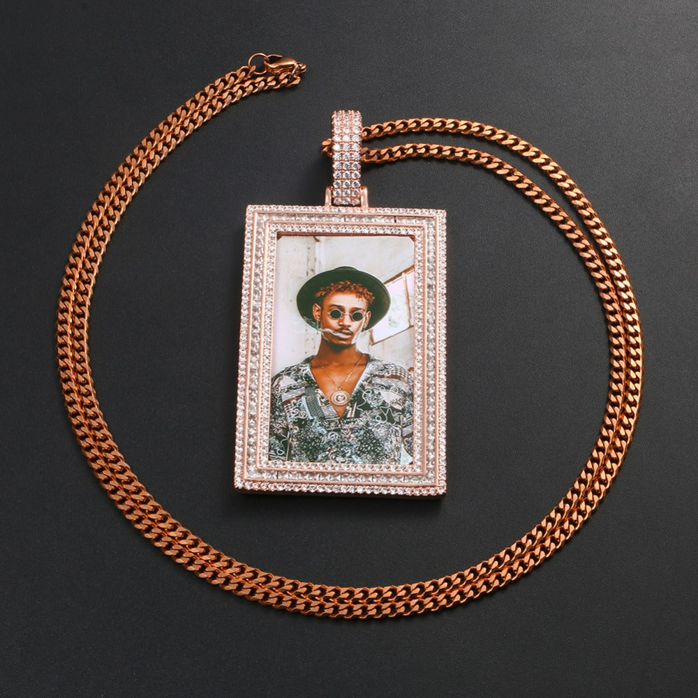 Our high in demand Custom 14k Gold Photo Pendant Necklace is the most loved new trend as it allows you to memorialize your favorite photo into a piece of jewelry you can wear every day. This custom Hip hop photo necklace is specially designed for the hip-hop lover. Custom 14k Gold Photo Pendant Necklace is the perfect backdrop for your favorite photo. A personalized necklace with your special moment is always the best gift for your loved ones.