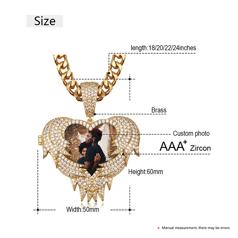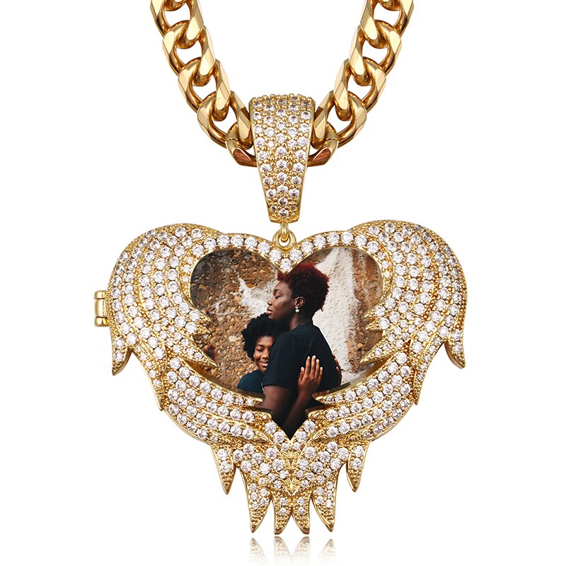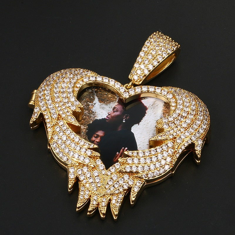 Our Beautiful Heart Pendant Necklace looks like a flower and can be customized with any photo you want to. Our Personalized 14k Gold Heart Photo Pendant Necklace is uncommonly designed as a locket, with you can change any photo, you can put any photo when you want, also its a Hip Hop Pendant glorious Pattern 2 in 1 Necklace.