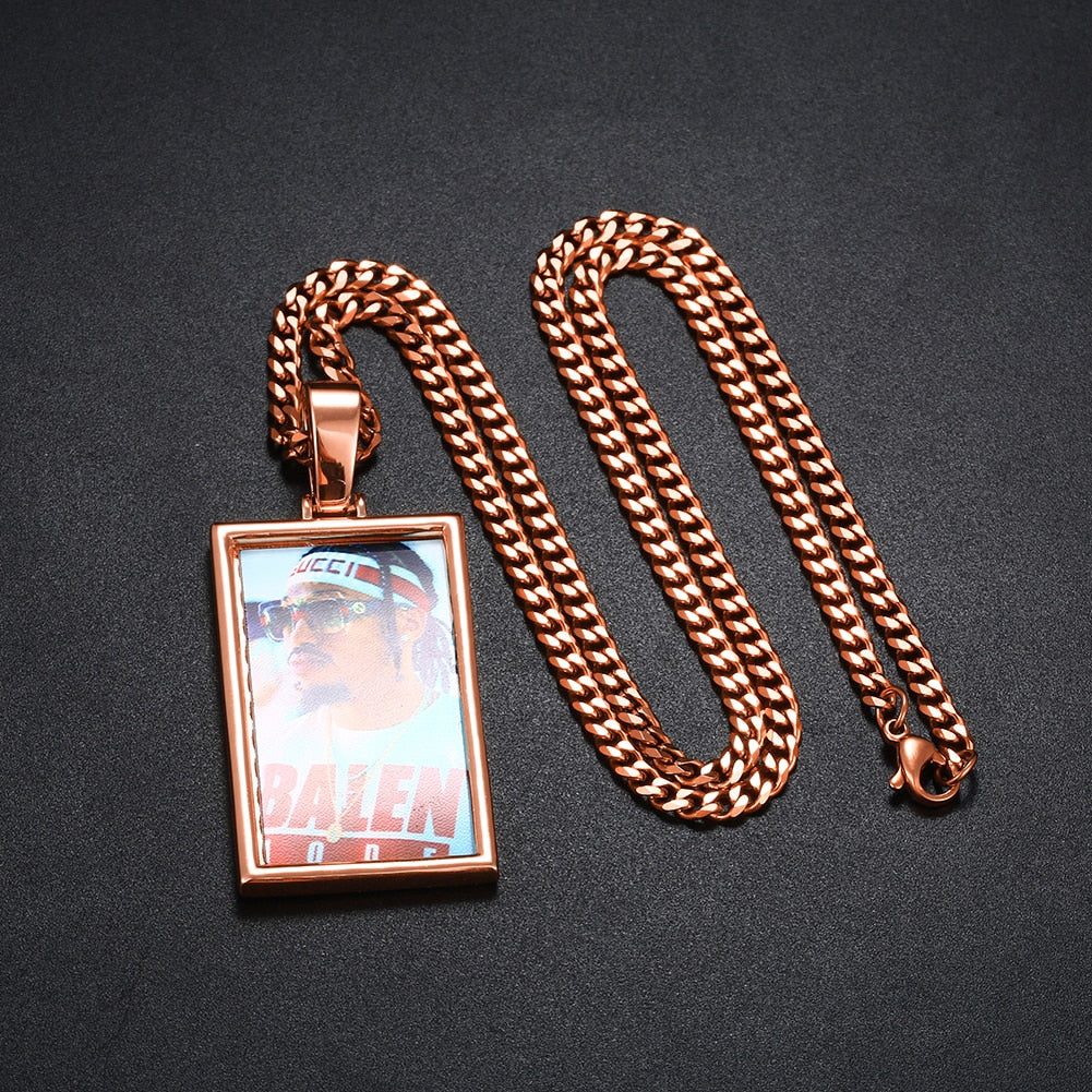 Resemble a Hip-Hop Raper with our new Custom Rectangle Photo Pendant in Medallion Necklace. A profoundly cleaned surface and 14K Gold Plating shading will keep it sparkling consistently, particularly while in light. This one-of-a-kind piece will separate you from the rest. Carrying this new piece to your life today.