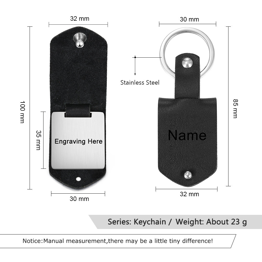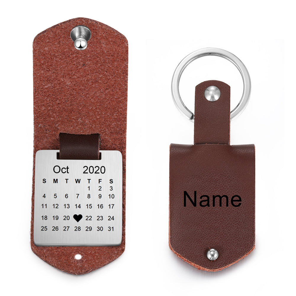 This Calendar Keychain can engrave a day of the month on the calendar part and a photo on the positive part, and engrave your name on the surface of the leather skin. You can choose your date of birth, anniversary date, or any other special, important and significant date for the engraving. The specified year, month, and date are engraved on the calendar, and the special date is engraved with a heart.