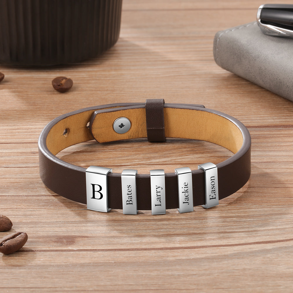 Custom Family Name Bracelet- Leather Bracelet For Men