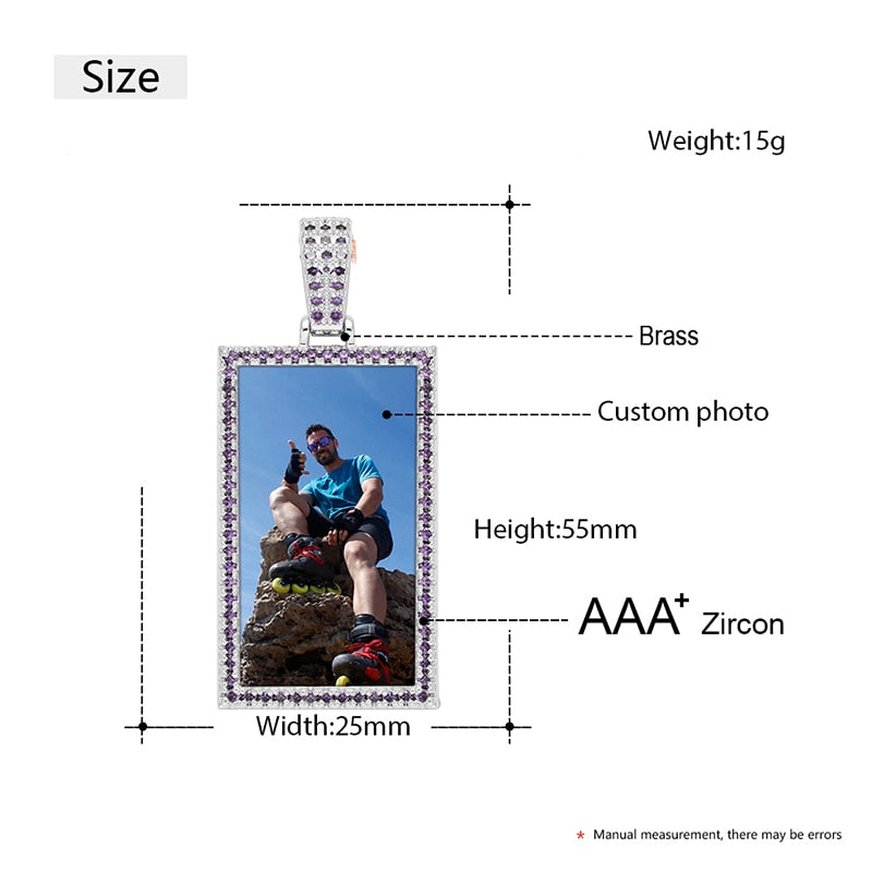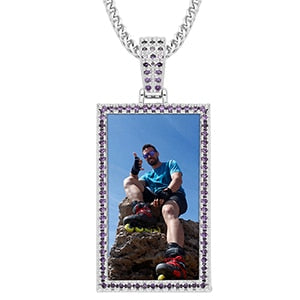 This Custom Made Purple Stone Rectangle Photo Medallion Necklace allows you to memorialize your favorite photo into a piece of jewelry you can wear every day. The Custom Made Purple Stone Rectangle Photo Medallion Necklace is the perfect backdrop for your favorite photo. A personalized necklace with your special moment is always the best gift for your loved ones. This is a very memorable medal necklace, You can put any of your favorite images into the pendant.