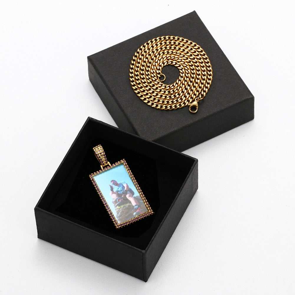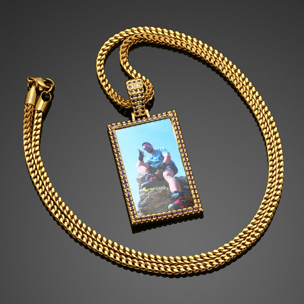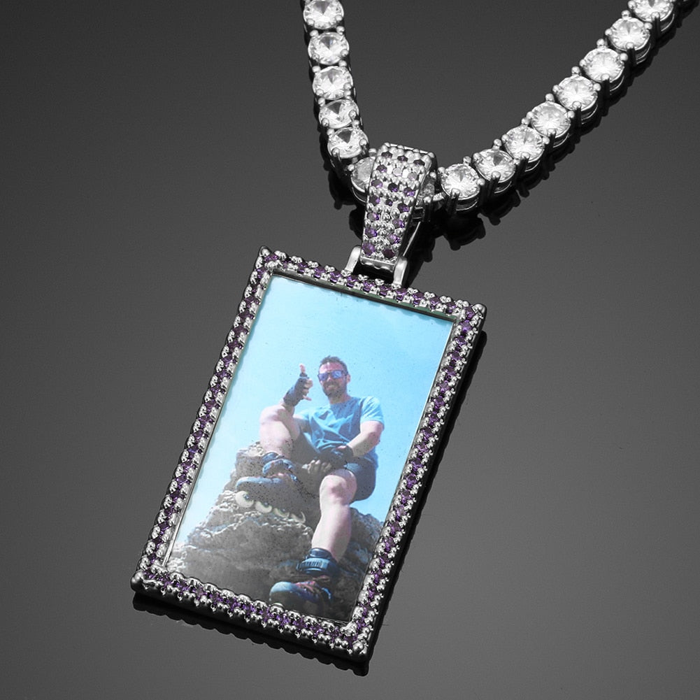 Package Includes: 1Piece Custom Made Purple Stone Rectangle Photo Medallion Necklace