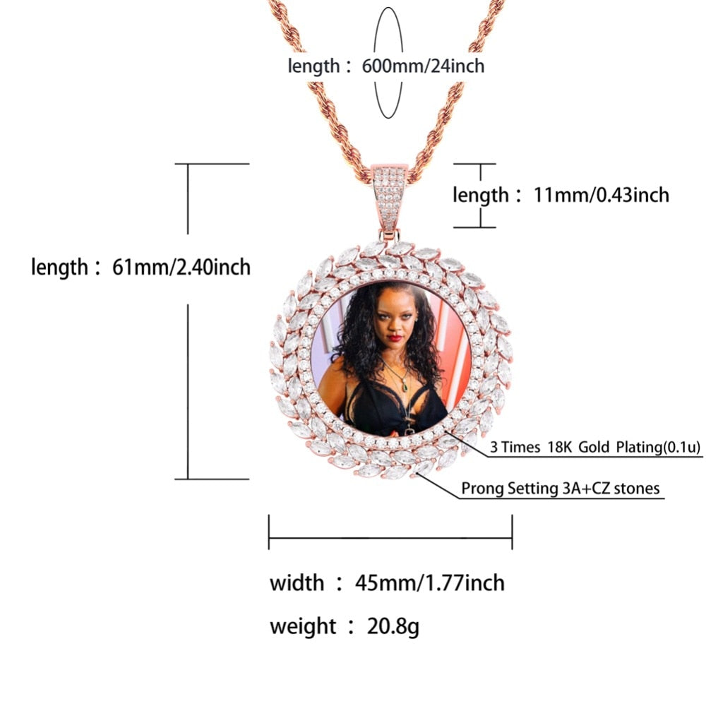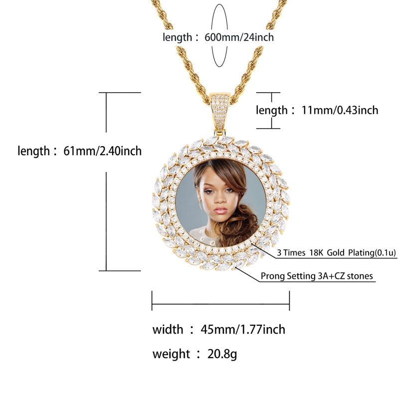 Package Includes: 1pc Custom 18k Gold Cubic Zircon Photo Pendant Necklace