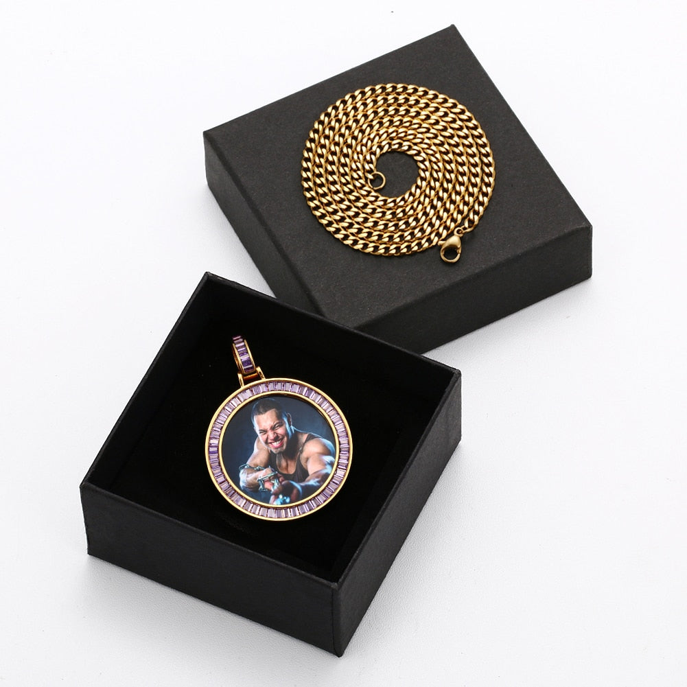Package Includes: 1 x Hip Hop Chain(if selected), 1xHip Hop Custom Picture Pendant