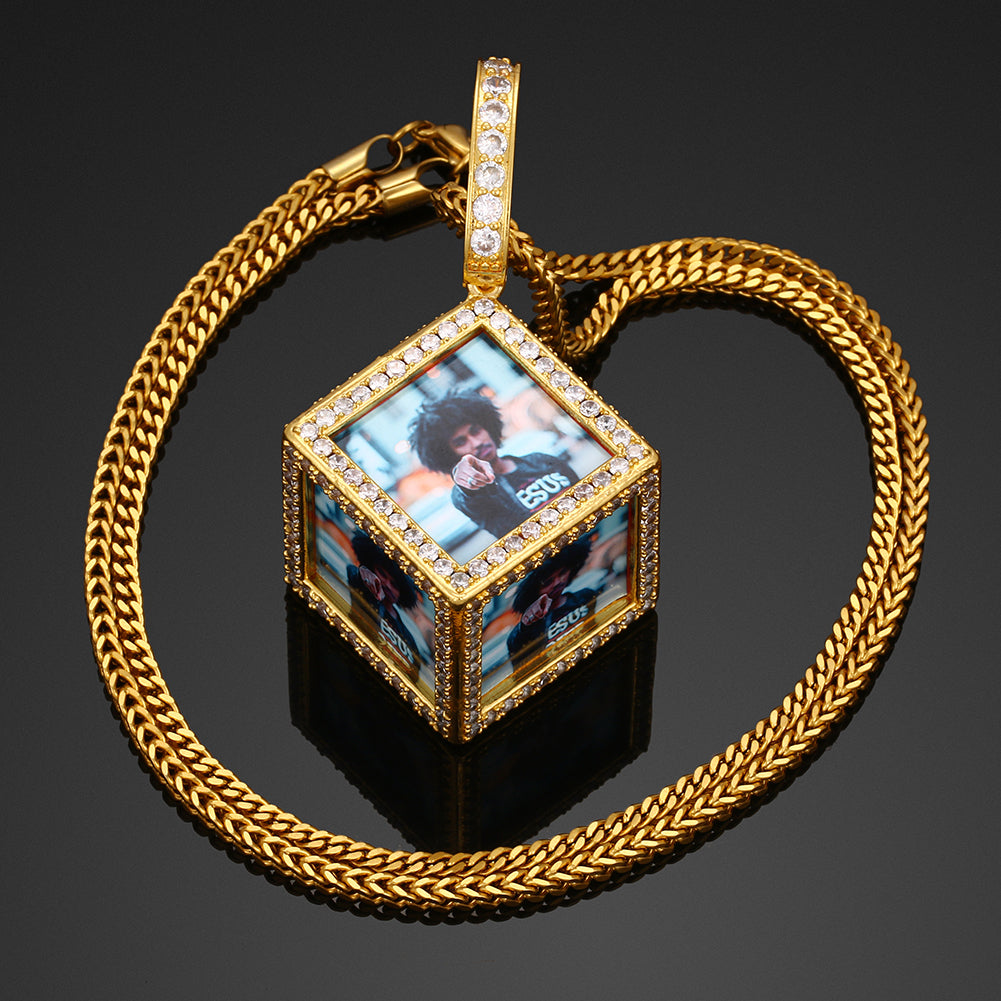 Package Includes: 1pc Personalized Cube Photo Medallion Necklace Hip Hop Jewelry