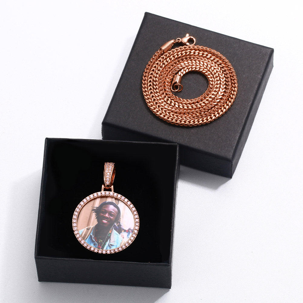 Pink AAA Cubic Zircon Custom Photo Medallion Necklace