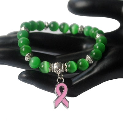 An iconic and international symbol of breast cancer awareness, this breast cancer bracelet has a big heart for our friends and family going through the cancer journey. Show your support for breast cancer awareness with this beautiful bracelet.