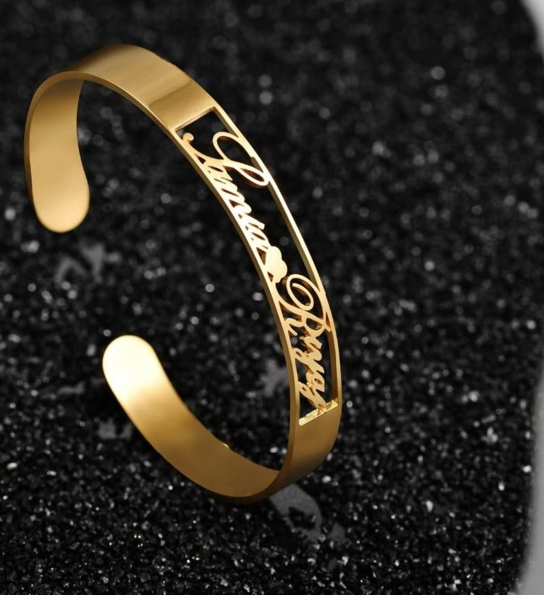 This Customized Name Cuff Bangle is one of the most special and personal pieces of jewelry you can own or give as a gift. It's perfect on its own. This name bracelet, made with Stainless Steel. The unique nameplate is centered with delicate engraving making this the perfect gift for someone special or even the ideal item to spoil yourself.  This is adjustable so you can be slipped on and off very quickly. 😊😊👼