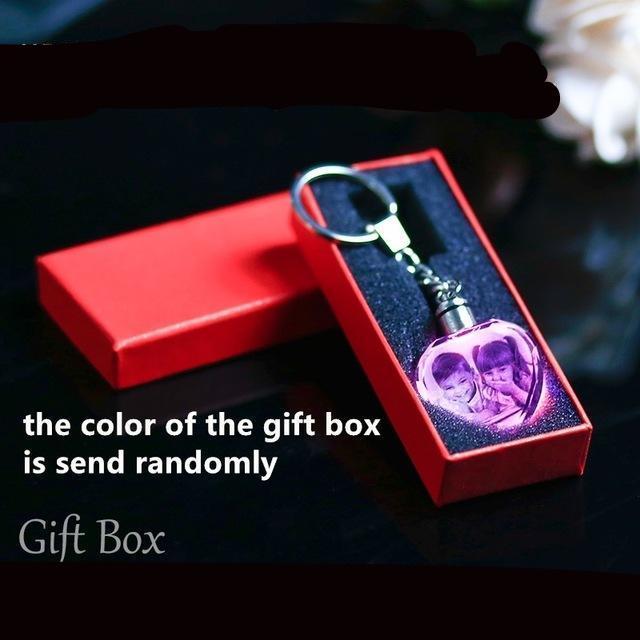 Engrave any photo with these crystal glass personalized keychains. It is also a LED light keychain, you can switch the top of the keychain and the color will change from one to another.