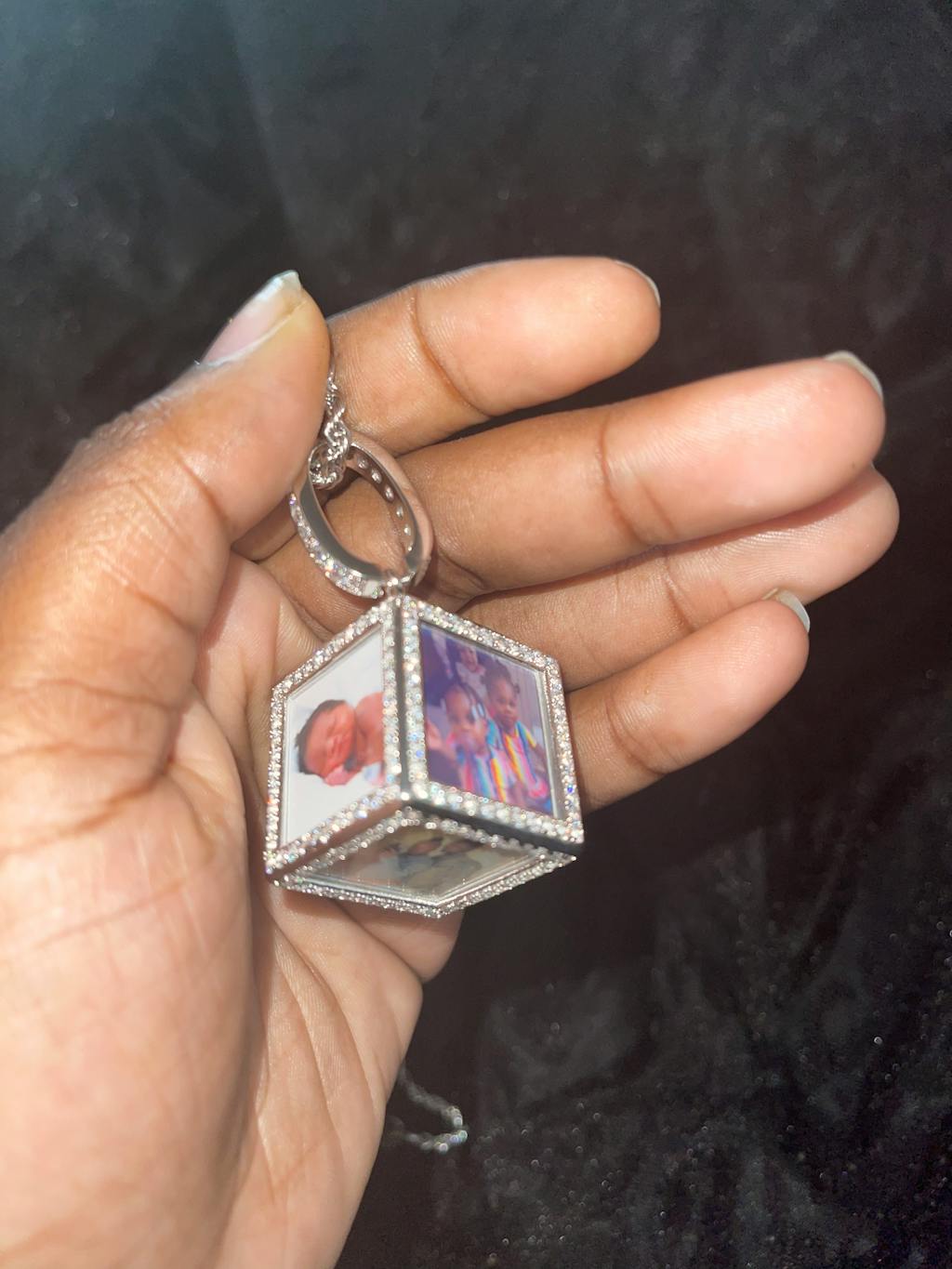 18K Gold Plating Custom Cube Pendant Photo Medallion Necklace For Men And Women