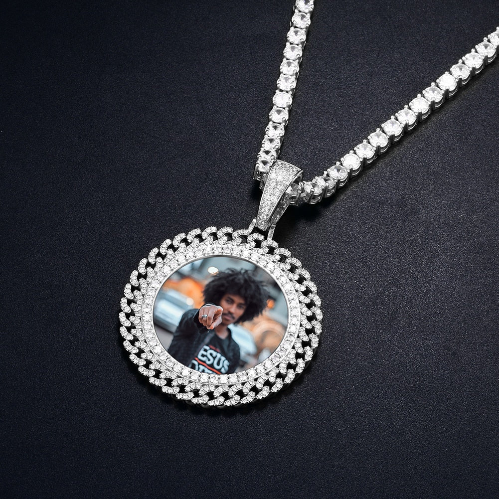 This Unique Round Shape Custom Photo Medallion Necklace is perfect for everyday wear will make you charmer and interesting, beautiful and attractive. The Flower Shape Custom Photo Medallion Necklace is made of environmentally friendly copper inlaid AAA Cubic Zirconia, never rust, it glistens and does not fade. Personalized with the picture your love and carry out with Cuban link pendant.