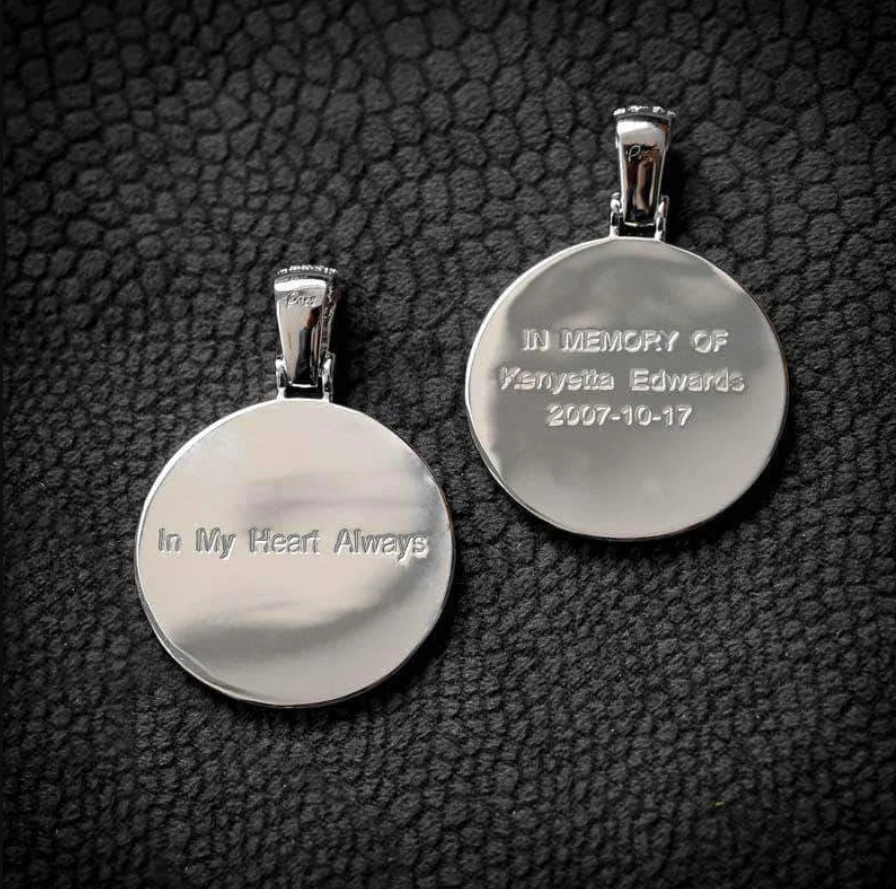 You can also ENGRAVE TEXT on the Backside of the pendant, with personalized text, special date, or symbol.