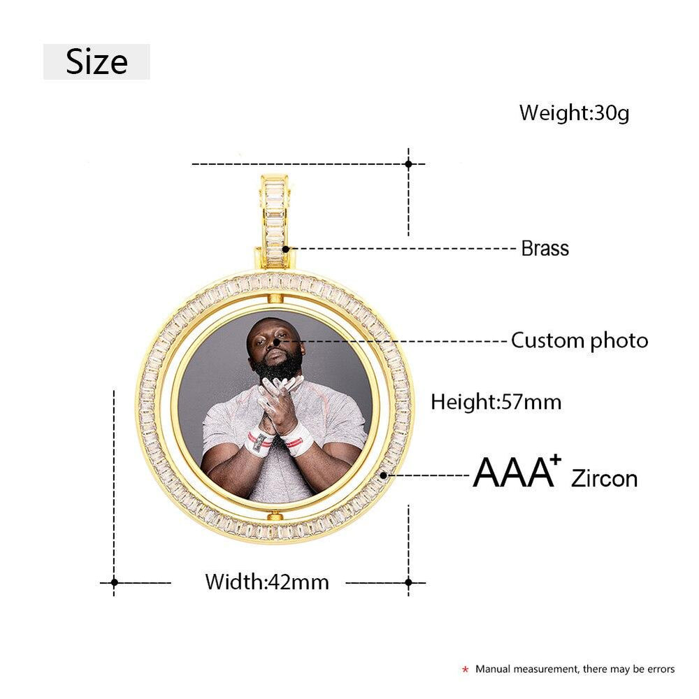 18K Plated Gold Pendant Custom Photo Medallion Necklace With 8 Micro Nano Stone