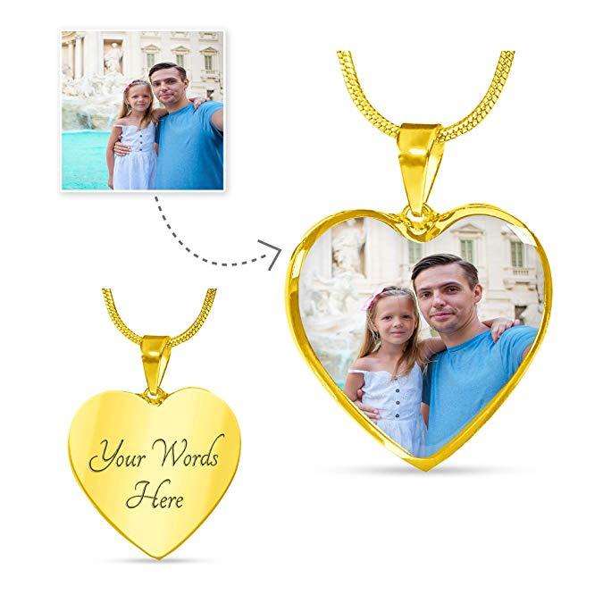 Custom Photo Heart Shaped Necklace Best Gift For Grandparents, Grandma and Great Grandma