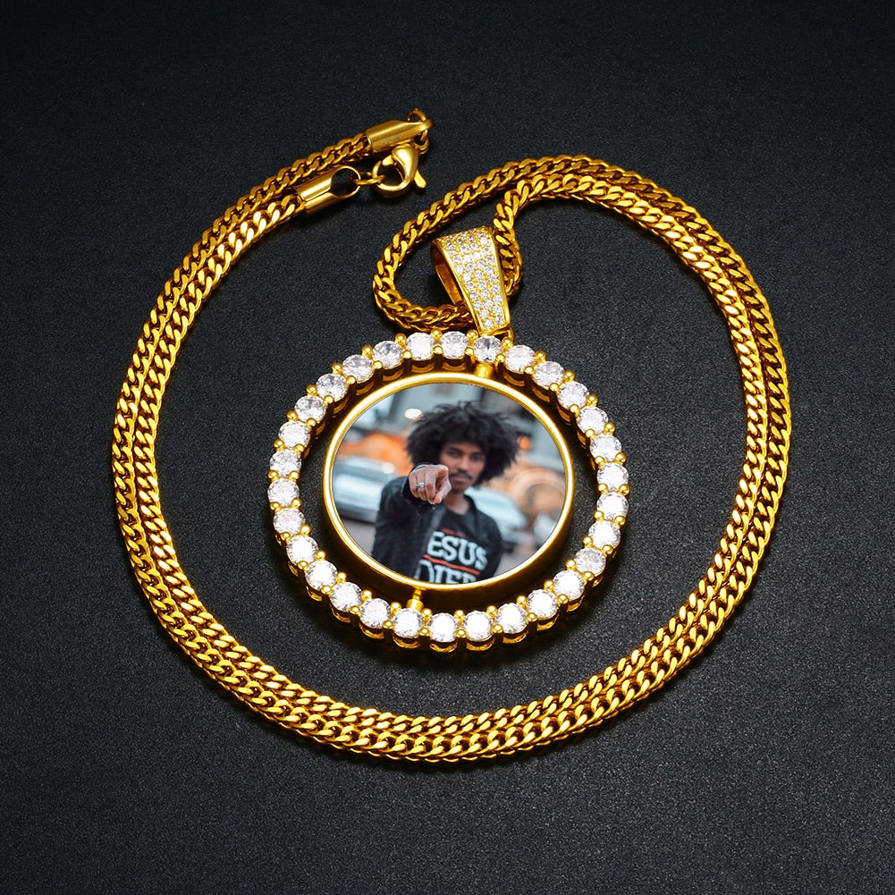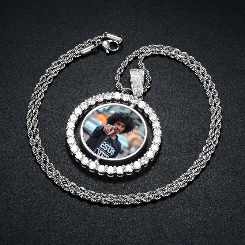 Package Includes: 1pc Photo Rotating Double-sided Medallion Pendant necklace