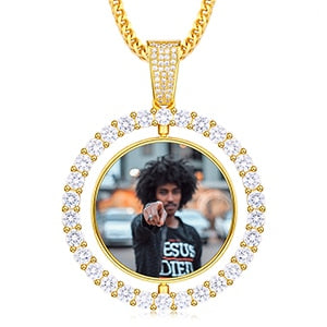 Polished Double Sided Photo Medallion Necklace, made with Stainless Steel, antiallergic, and no harm to health. Rhodium-plated on the surface of protecting necklace from Oxidation, keep the color, with cubic zirconia decoration. AAA zircon and highly 18K Gold Plating color process glamorous reflections and adds a luxurious look to this necklace.