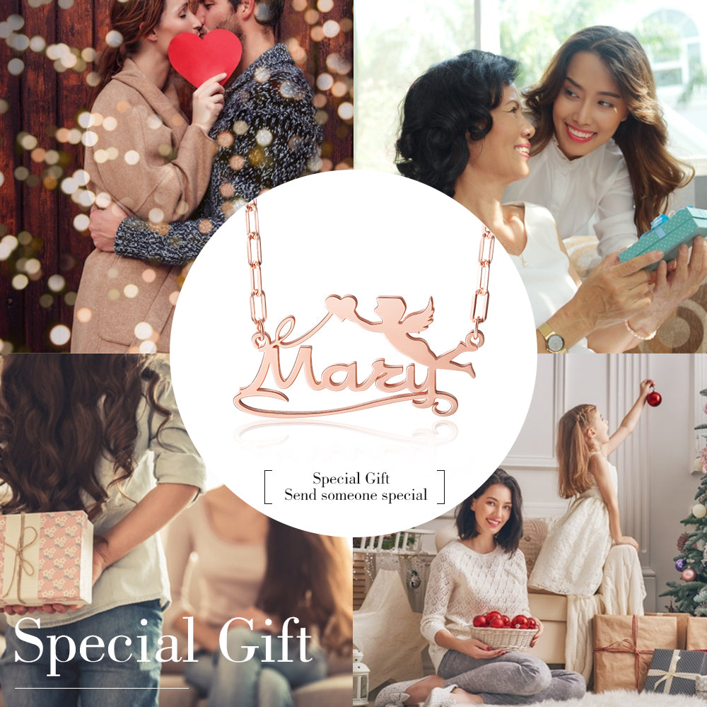 If you've been looking for a unique and special gift, you've just found it. Give a special gift and customize it with something significant to make anyone who receives it smile. Each item is made to order making it unique and special to you. Engrave names, coordinates, roman numeral dates, etc. Dress up your outfit with a fabulous S925 Silver Custom Name Angel Necklace With Heart by EngravedGiftsly.