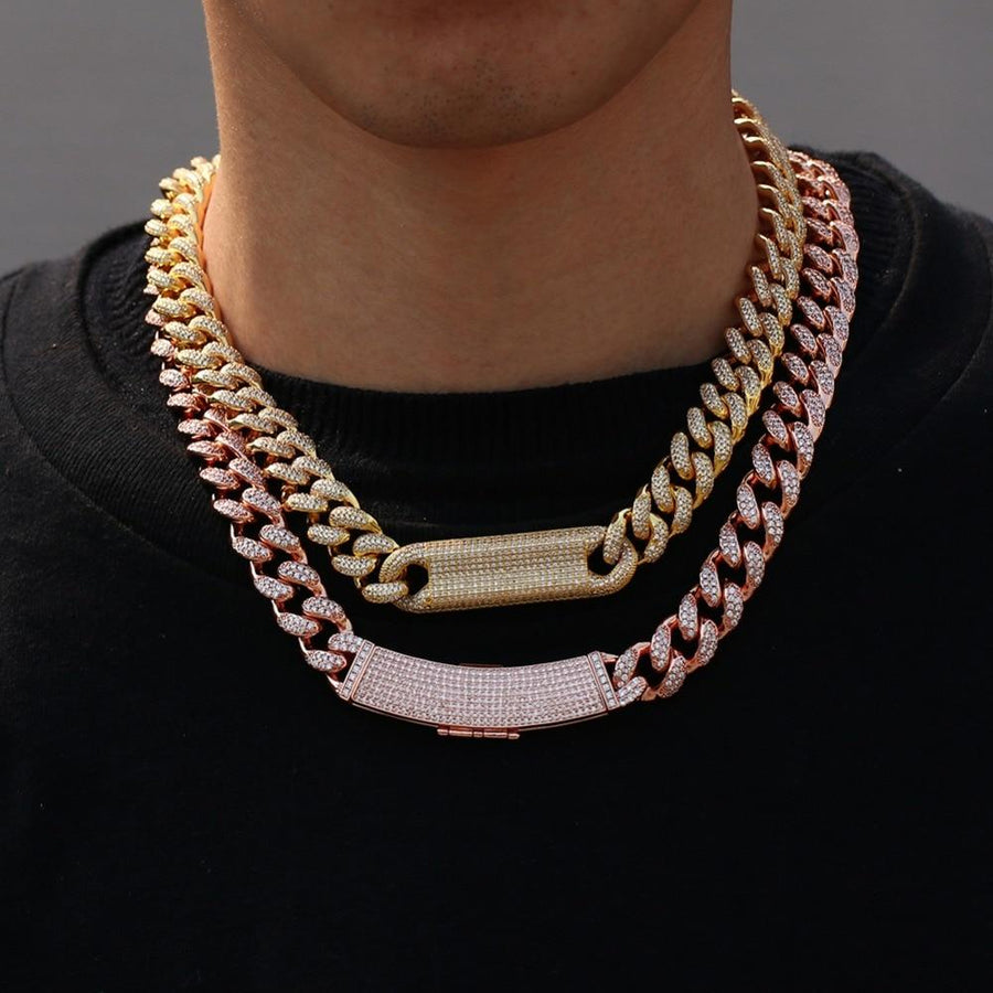 18K Gold Plated 10MM Iced Out Cuban Chain Hip Hop Necklace For Her