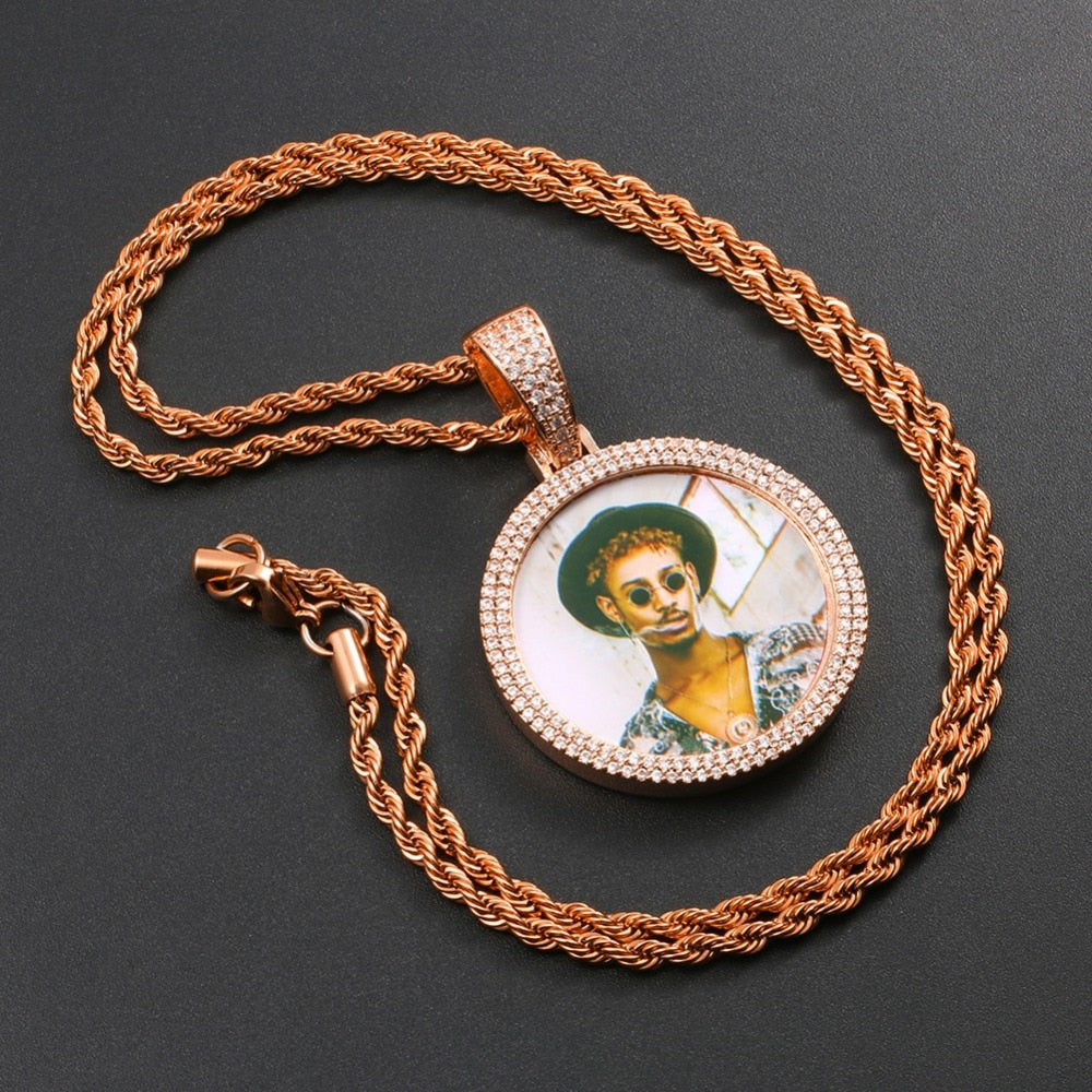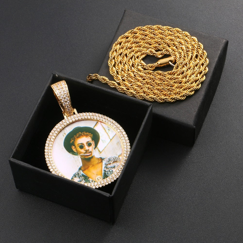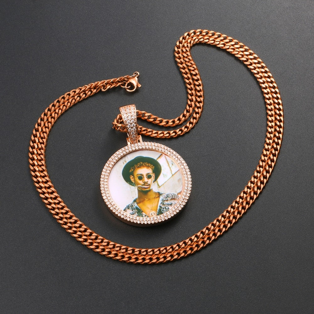 14K Gold Plated Picture Pendant Necklace For Men - Personalized Picture Necklace