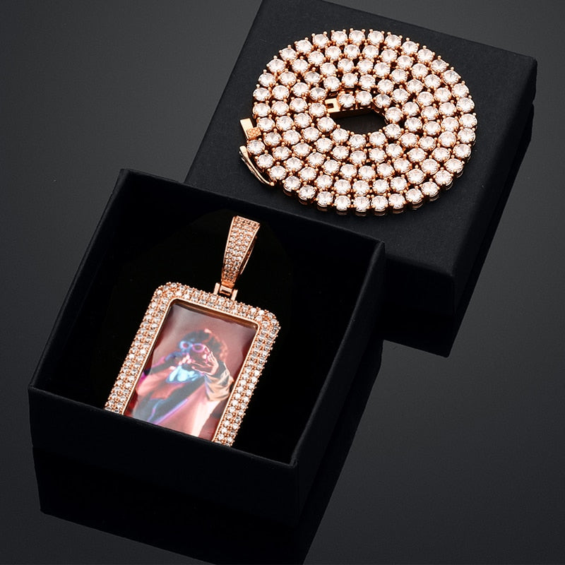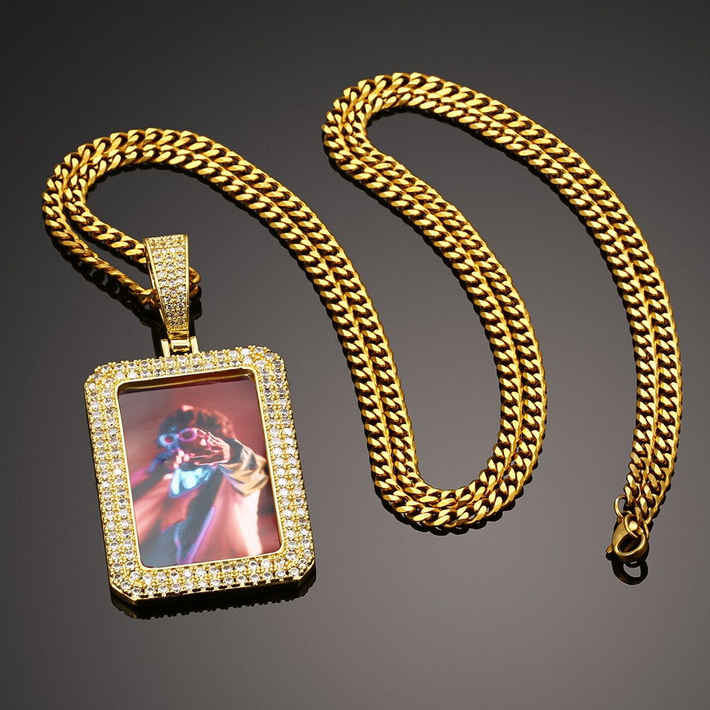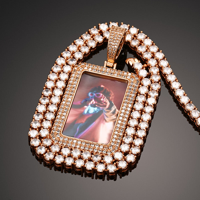 Personalized photo necklace is theĀ most loved new trendĀ as it allows you toĀ memorialize your favorite photo into a piece of jewelry you can wear every day.Ā This Double Row Crystal Square 18K Plating Of Gold Medallion Hip hop photo necklace speciallyĀ designed for the hip hop lover. The photoĀ Medallions necklace is a perfect square-shaped pendant for your favorite photo. A personalized necklace with your special moment is always the best gift for your loved ones.Ā