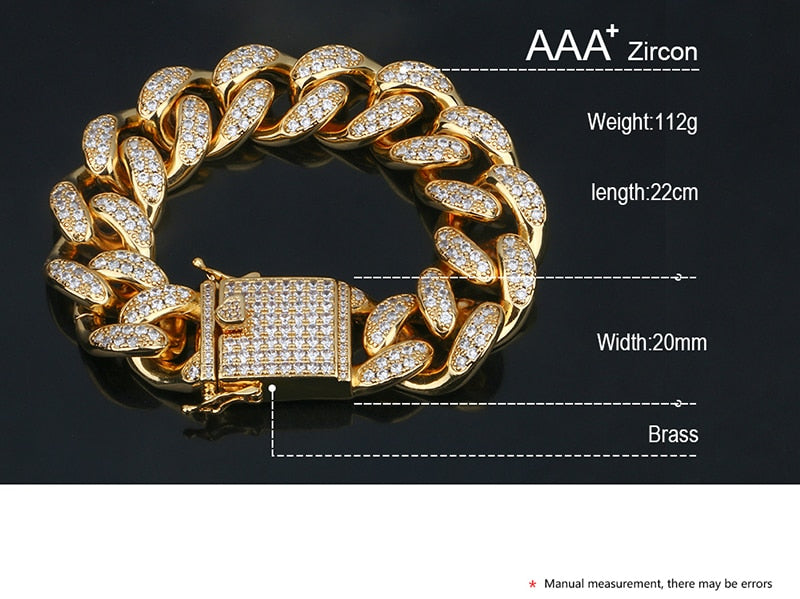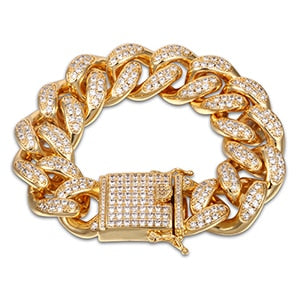 This beautiful 20mm Wide Cuban Chain Hip Hop Bracelet is made with a thick layer of 18k yellow gold, plated over premium stainless steel - which helps the gold stay for a very long time without fading or losing its shine.