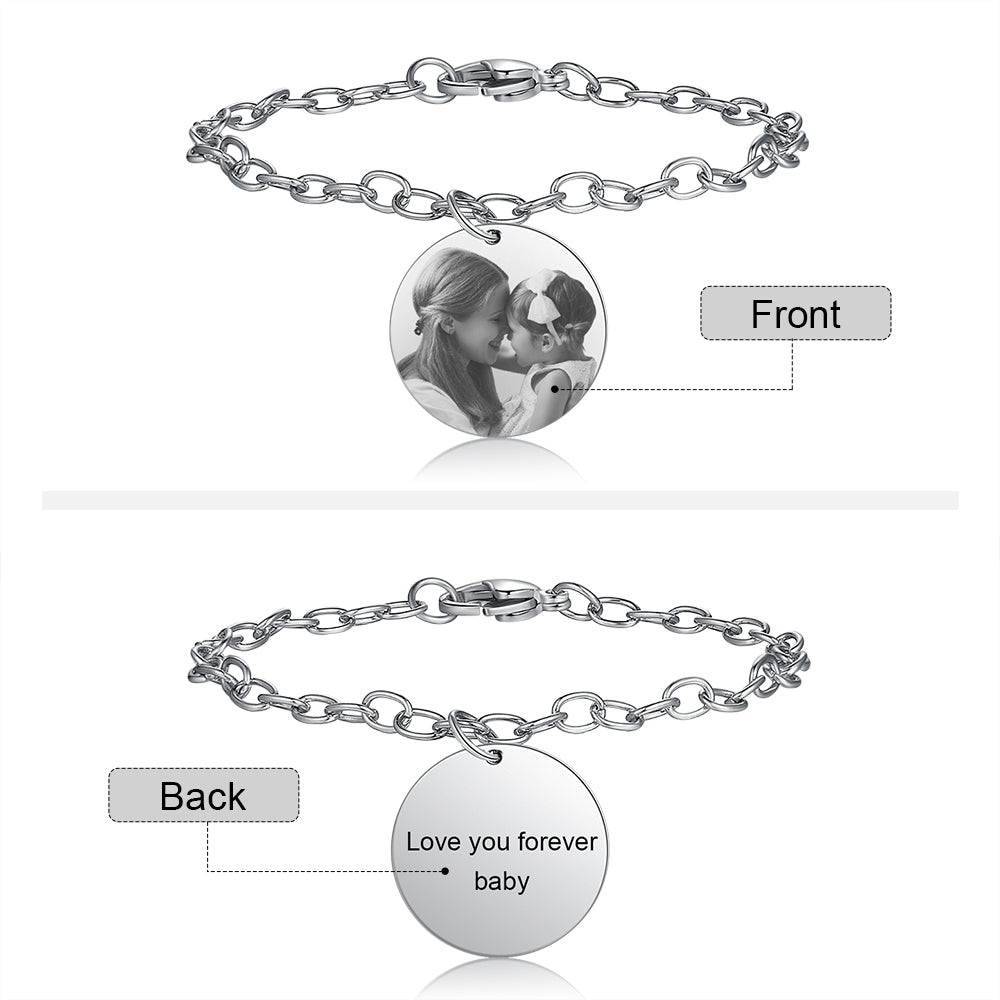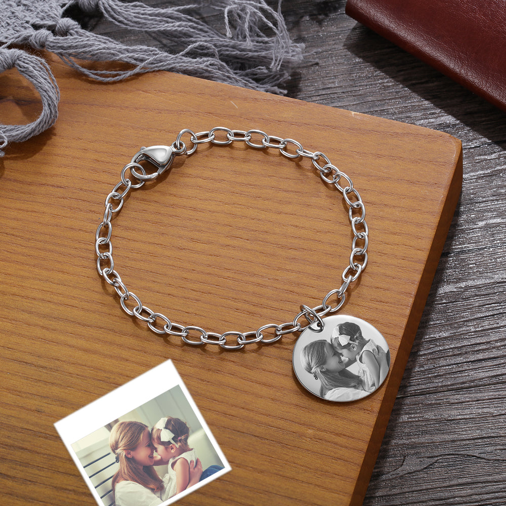 Personalized Round Photo Charm Bracelet-Engraved Bracelets For Women