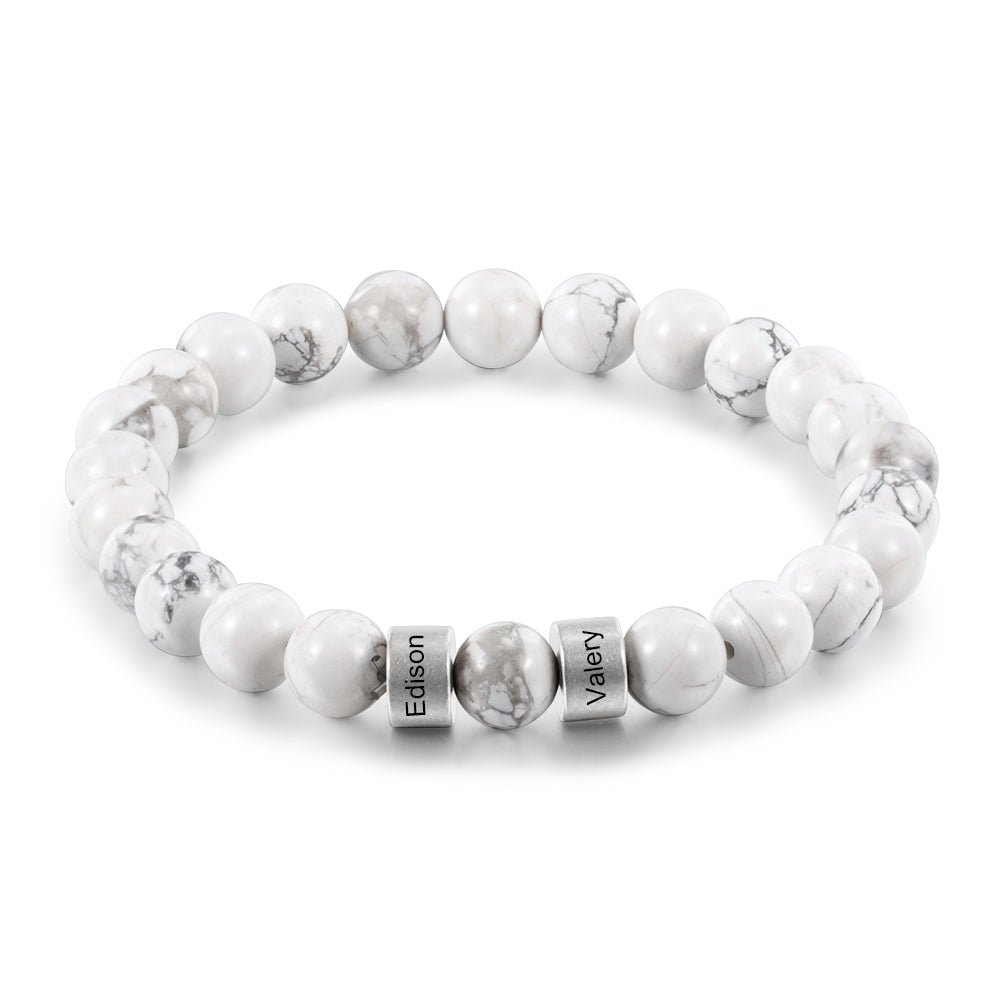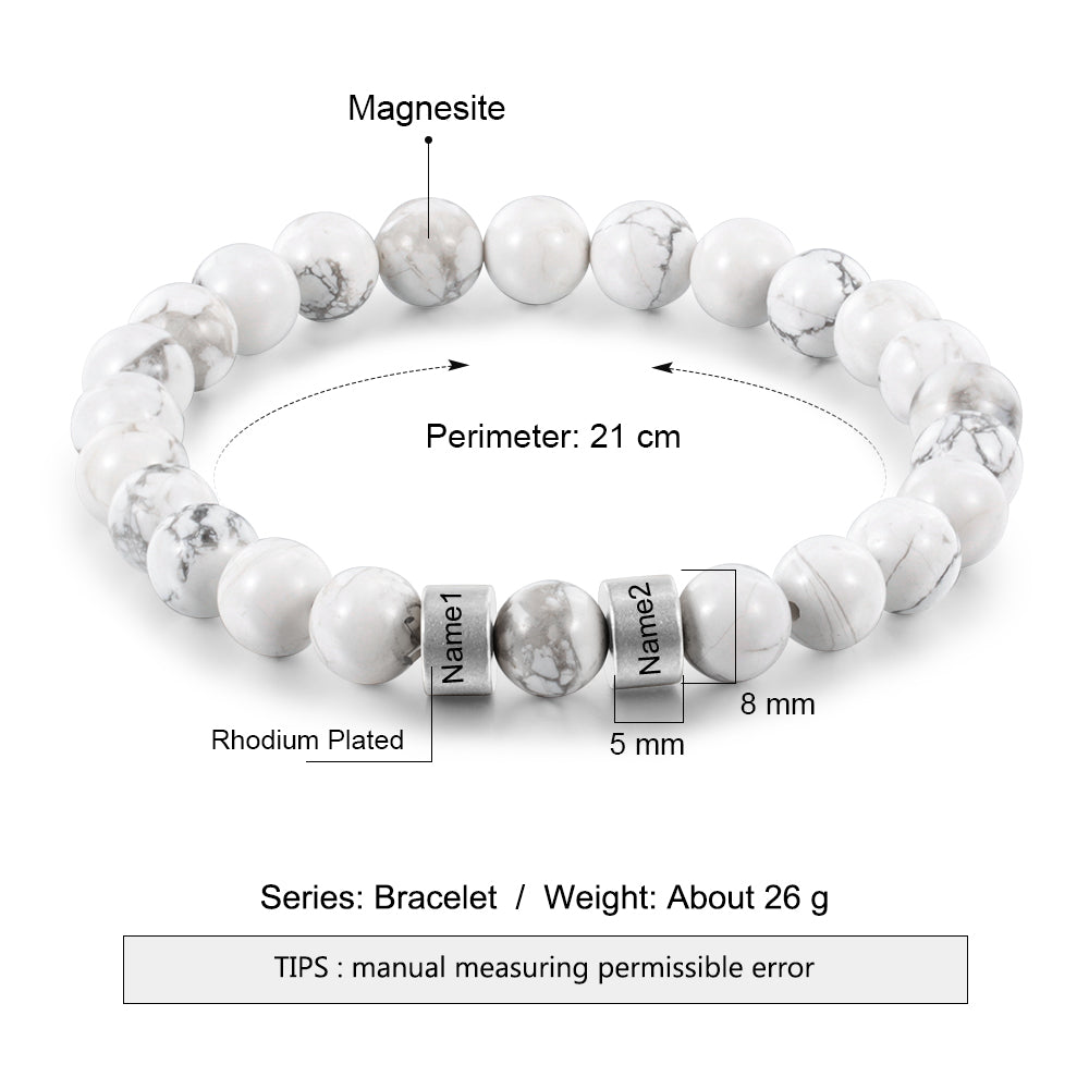 Natural Beads Bracelet has become the most iconic menswear and now EngravedGiftsly has added the name option on it. Chakra healing stones have a dual benefit, Chakras- Energy balancing and beauty. Express yourself with New Brand New Custom Magnesite Chakra White Bracelet. Makes a great gift for dad, mom, brother, sister, son, grandson, grandfather, husband, boyfriend, best friend, or a special someone in your life!