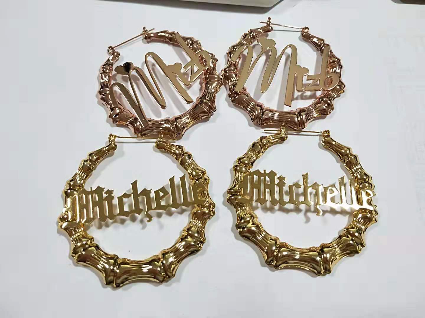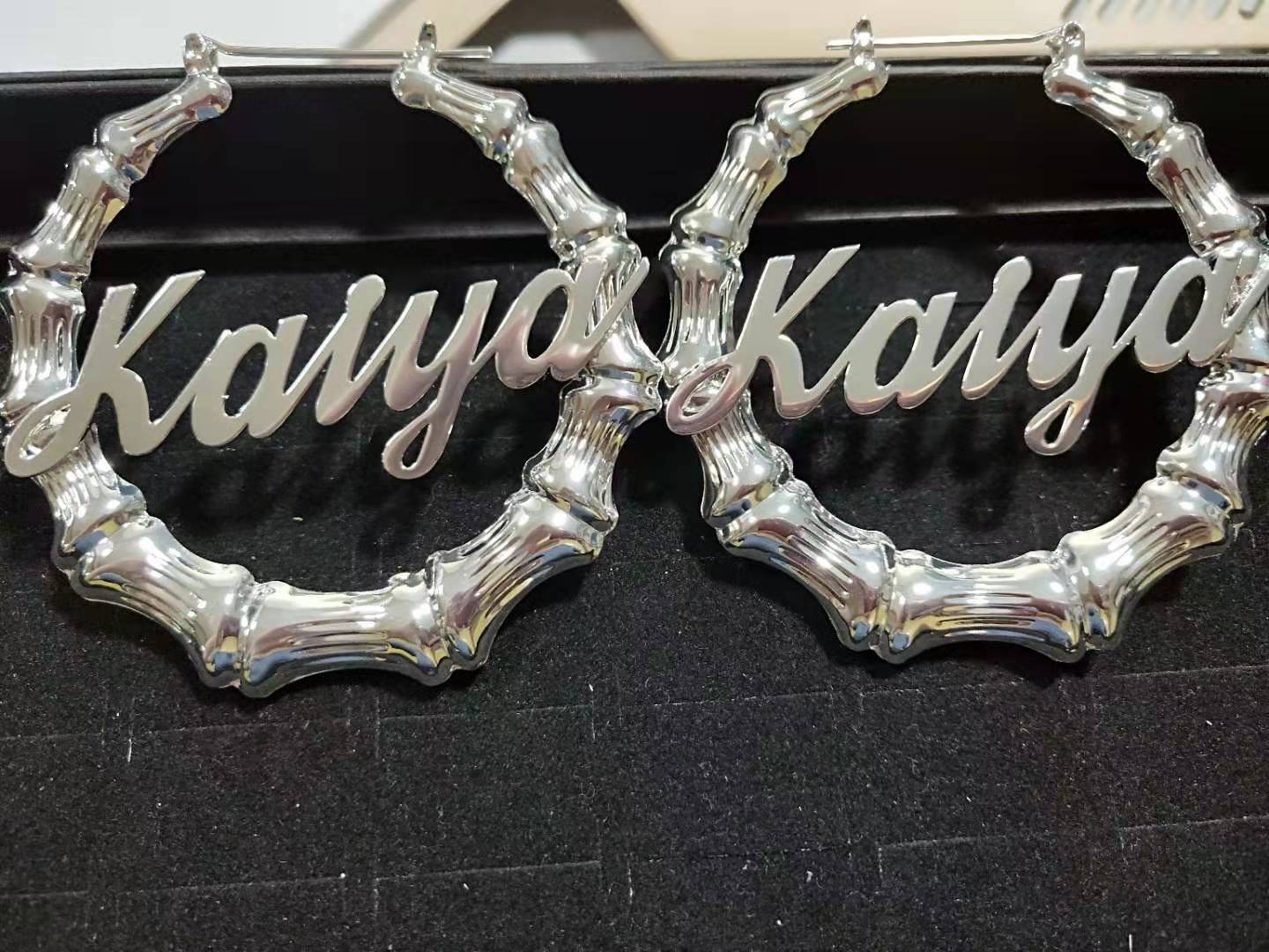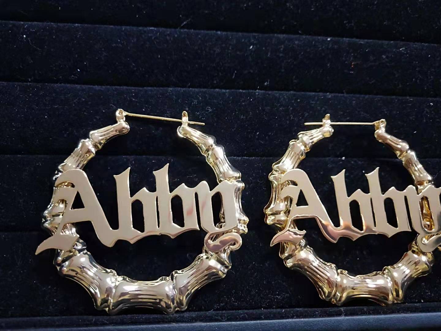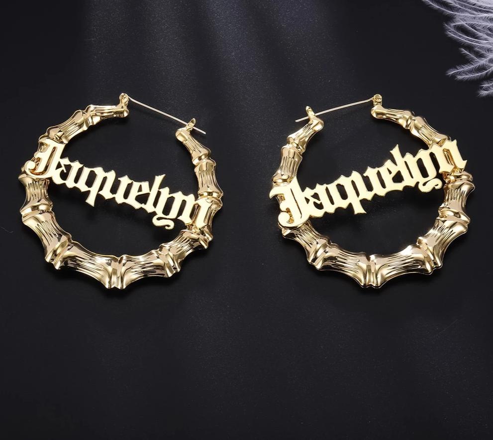 Personalized Bamboo Name Earrings-Hoop Earrings