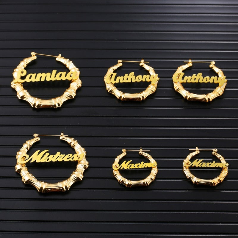 Personalized Bamboo Name Earrings-Hoop Earrings
