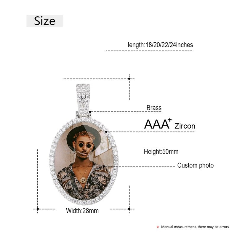 Our Custom 18k Gold Photo Oval Pendant Necklace is the most loved new trend as it allows you to memorialize your favourite photo into a piece of jewelry you can wear every day. This custom Hip hop photo necklace is specially designed for the hip hop lover. Photo Medallions necklace is the perfect backdrop for your favourite photo. Our Personalized necklace with your special moment is always the best gift for your loved ones.