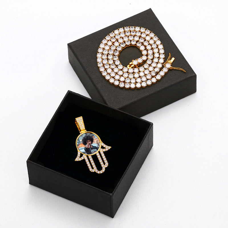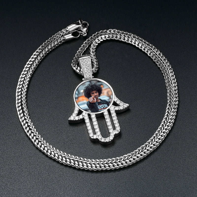 Get our most demanding hamsa hand photo necklace to attach with your favorite image and express the love by presenting this to your loving person as a surprise gift. Wear this stunning necklace with any outfit. This necklace comes in 2 material options. Get the right one in your choice. We have the best material S925 and CZ stone that is beautifying this necklace with gorgeousness.