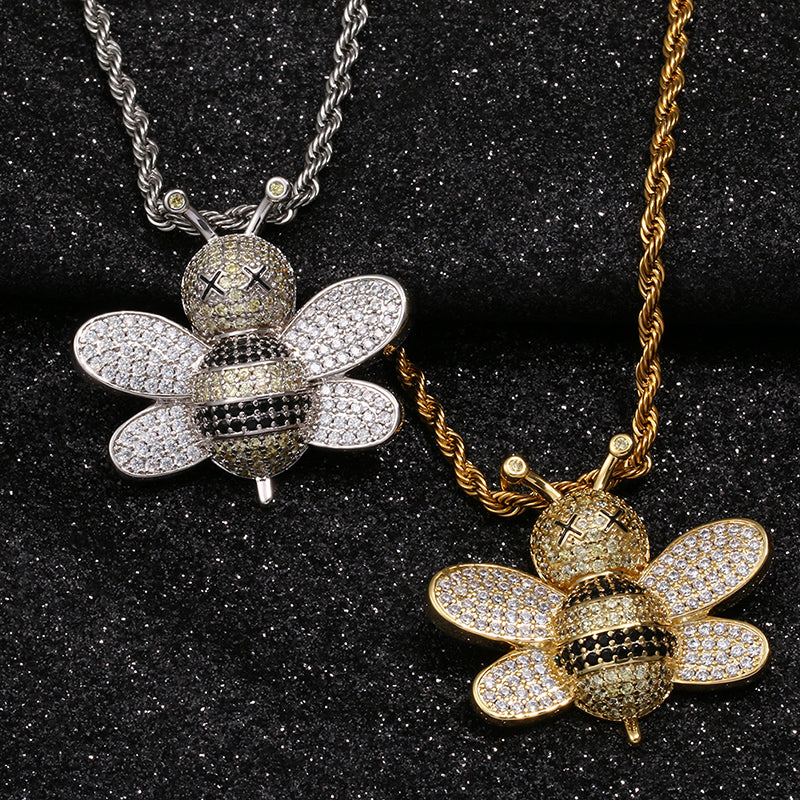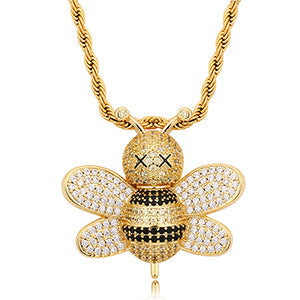 This lovely Bee Pendant Necklace is a lovely and playful piece. this necklace will always be a treasure in your jewelry collection. This Necklace will be a bold addition to any ensemble for any occasion. Show the world that you hustle for your money. This Pendant Necklace features high polish finish and sparkling simulated Diamonds.