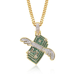 Stunning and sure to impress, this US Dollar Money Pendant Necklace will be a bold addition to any ensemble for any occasion. Show the world that you hustle for your money. This US Dollar Money Pendant Necklace features high polish finish and sparkling simulated Diamonds.