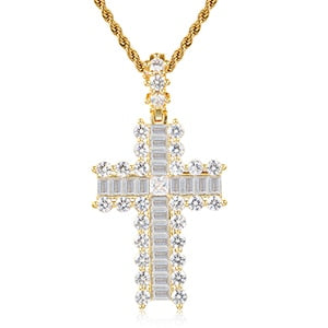 18K Gold Plated Cross Pendant Necklace- Cross Necklace-Hip Hop Necklace