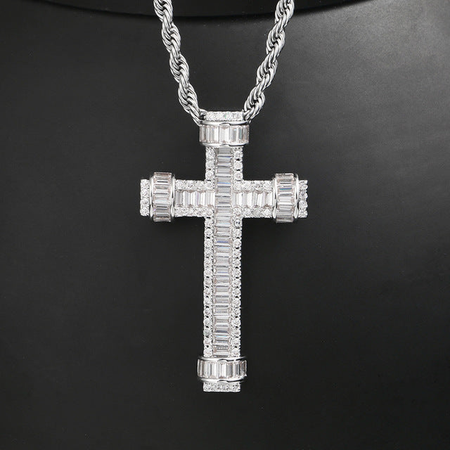 18K Gold Plated Pink Baguette Cross Pendant Necklace- Cross Necklace-Hip Hop Necklace
