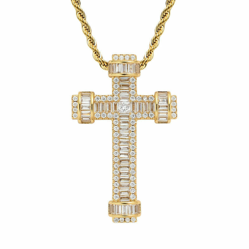 18K Gold Plated Cross Pendant Necklace- Cross Necklace-Hip Hop Necklace
