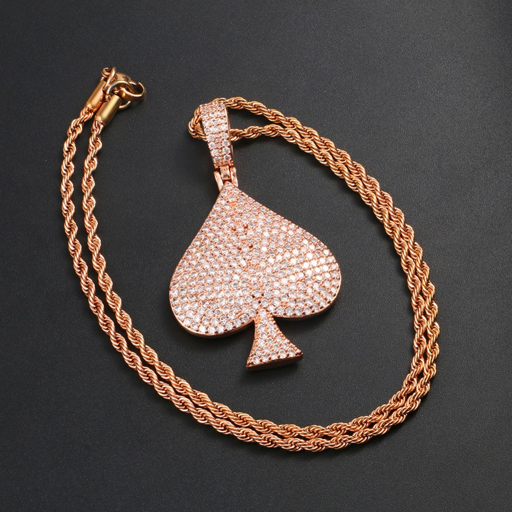 Package Includes: 1pc Rhinestone Spades Shape Pendant Necklace