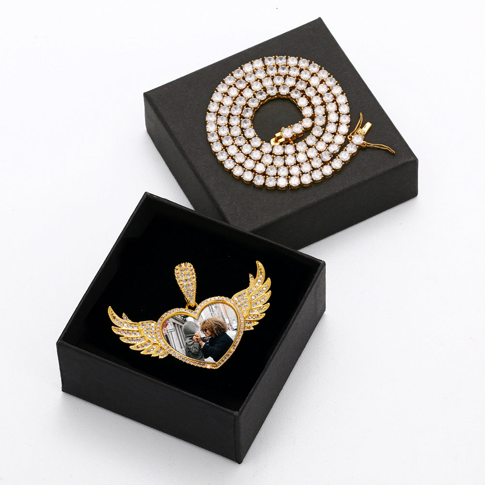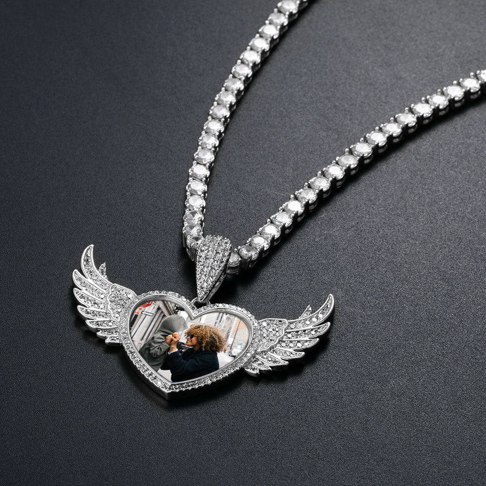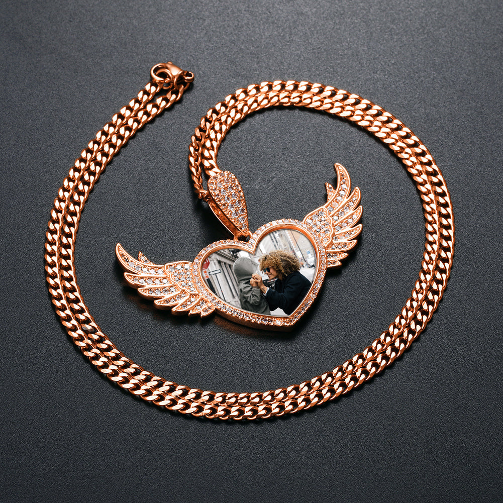 We have many personalized designs, In addition to getting your own name, the other choice will be to get a boyfriend's name, BFF, pets, parents, or even a favorite word you use to motivate. This Custom Photo Medalion Necklace With Wings has a beautifully polished surface so that the shine that comes off of them is very intense. Give them to people who celebrate birthdays, festivals or anniversaries. These works provide very thoughtful and popular gifts for people.