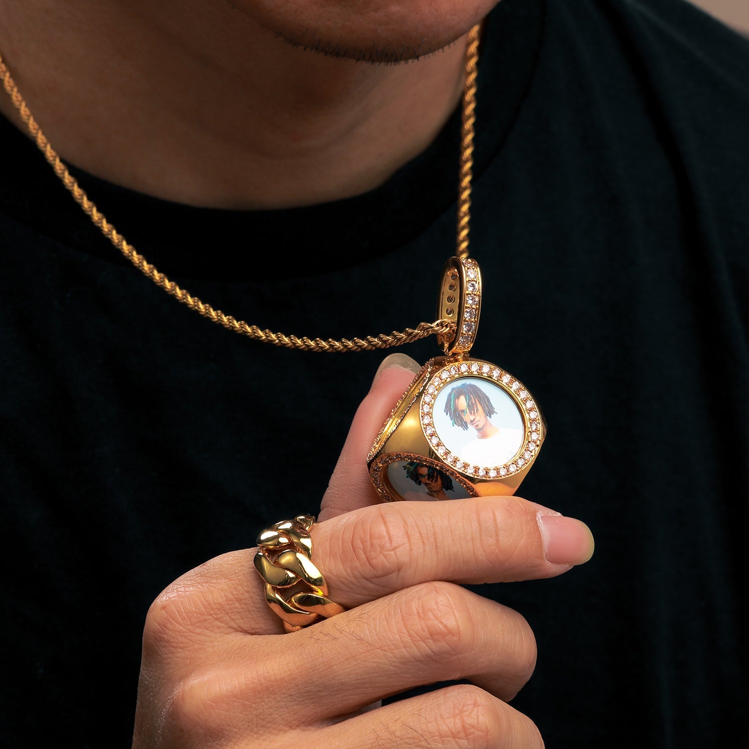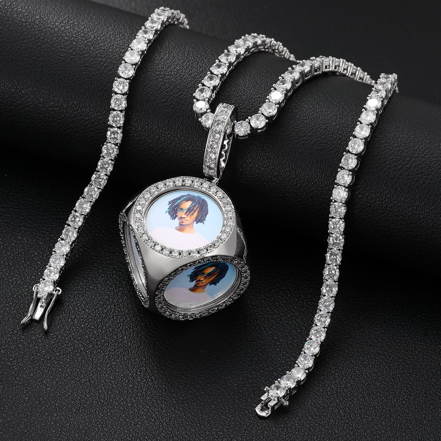 Our trendy & new Custom Photo Cube Medallions Pendant Necklace is the exclusive one to present to your special person. You can attach 6 different pictures to it! this Cool, classy and hip-hop necklace is the best choice for anyone! bring the fashion and elegant vibe with this hip-hop necklace. Add your image by your choice and wear it with any outfit!