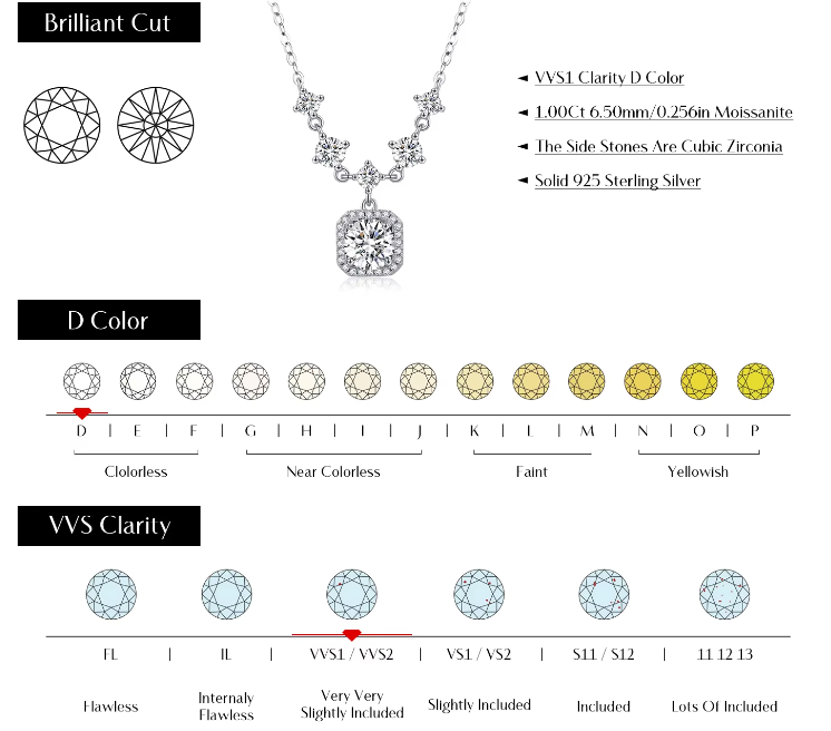 - Material: 925 Sterling Silver Moissanite GRA Certificate