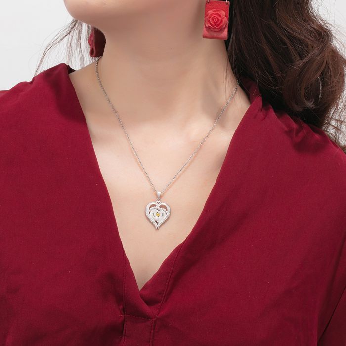 S925 Baby Feet Necklace For Mom- Heart Necklace For Mom
