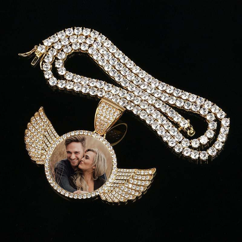 Personalized Picture Necklace With Wings- Christmas Gifts For Men