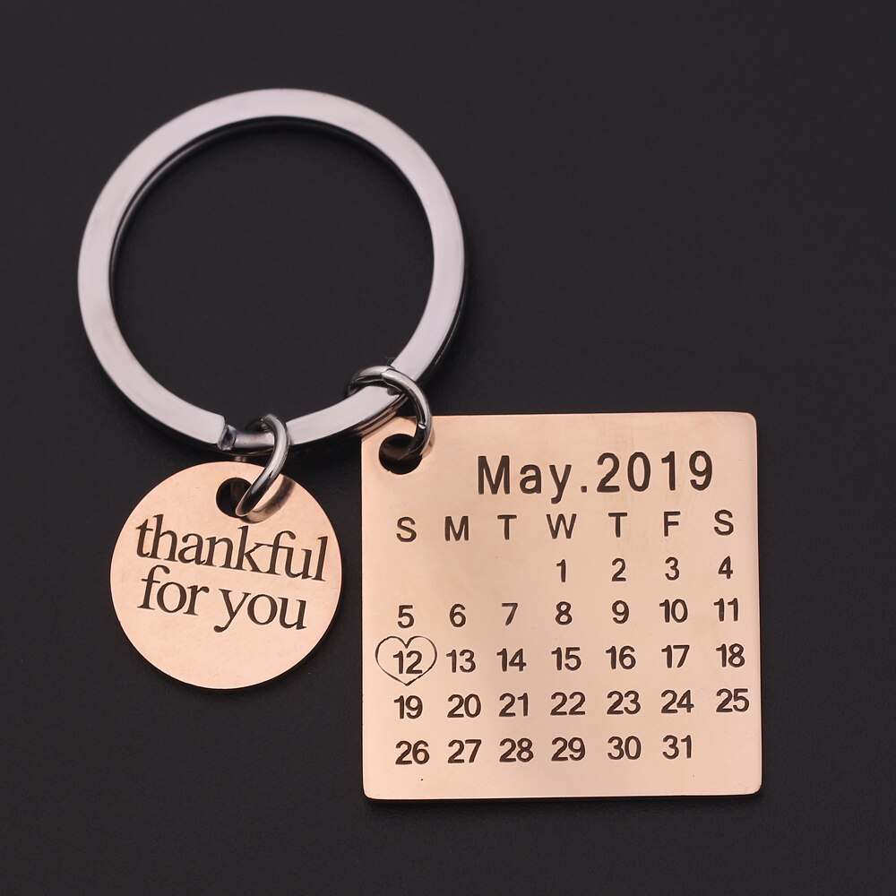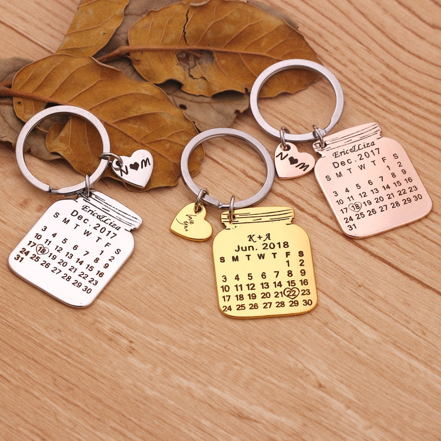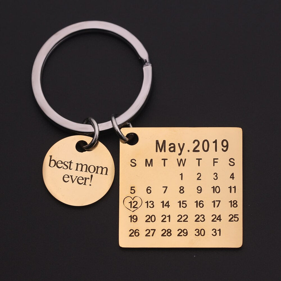 18K Gold Plated Calendar Keychain- Best Custom Keychain With Engraving Name, Date, Initials
