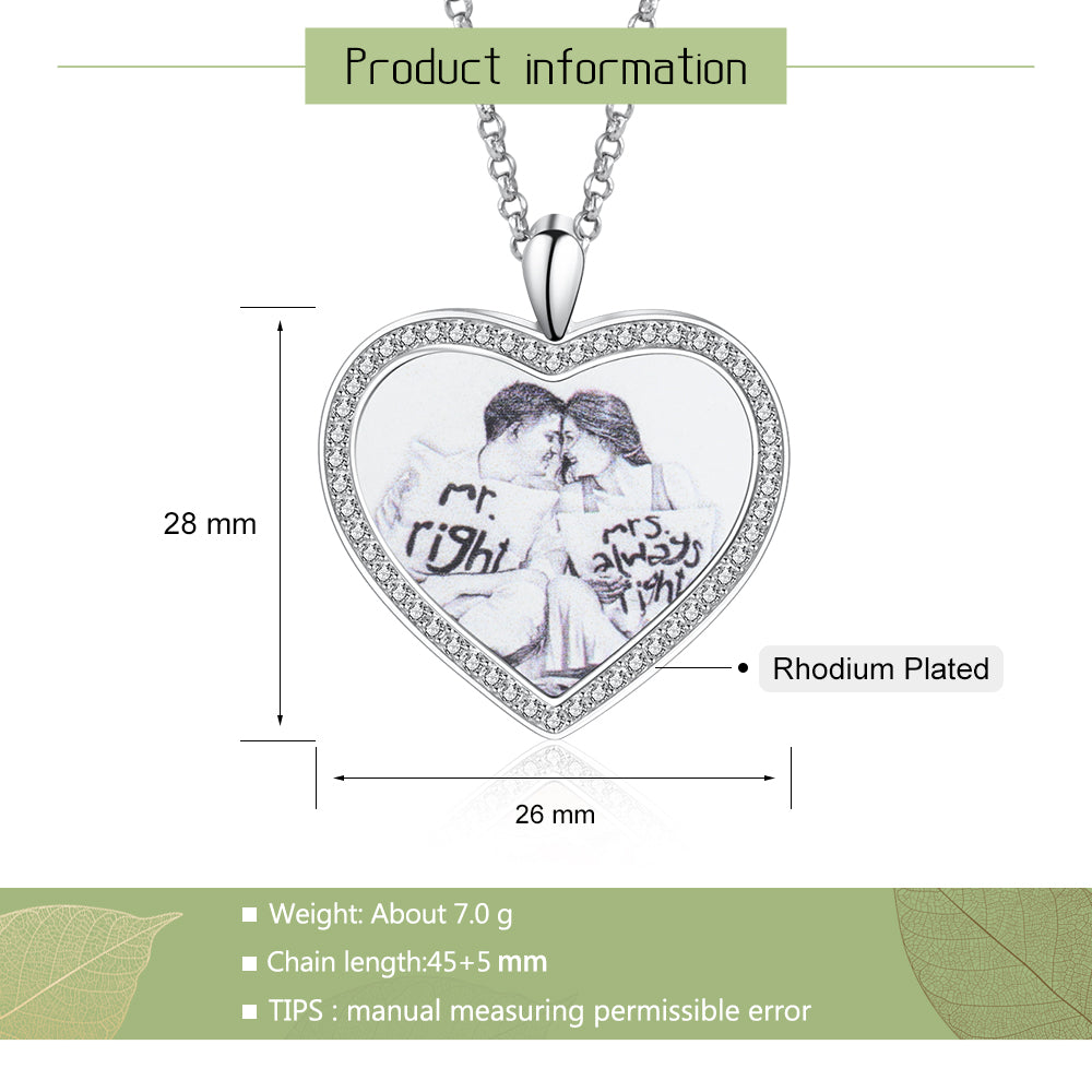 Package Includes: 1 Piece of Rhodium Plated Personalize Rhinestone Heart Necklace With Picture