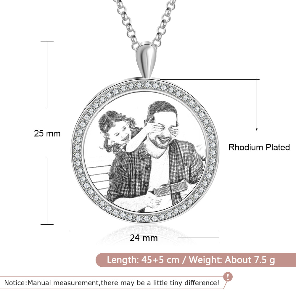 Package Includes: 1 Piece of Personalize Round Rhinestone Necklace With Picture