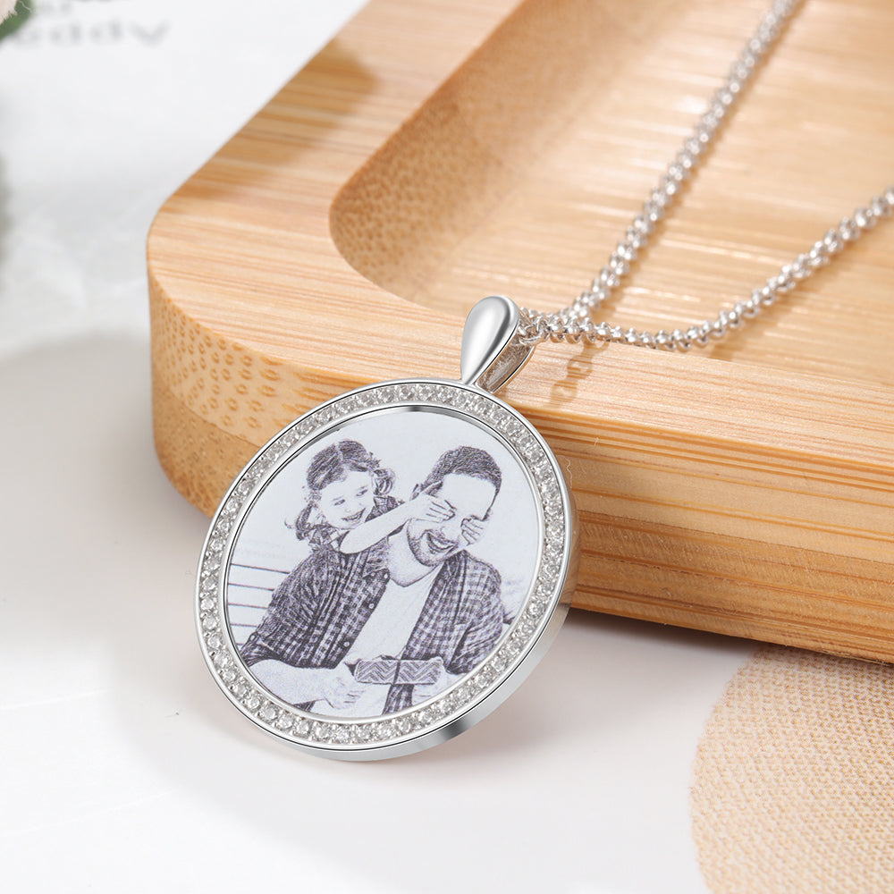 Rhinestone Necklace With Picture-Personalized Gift For Mom