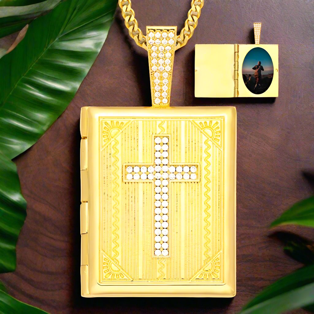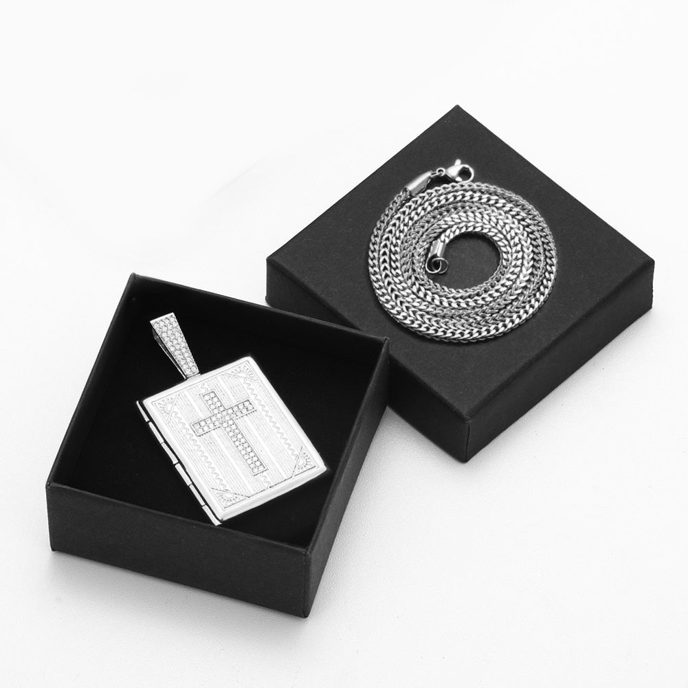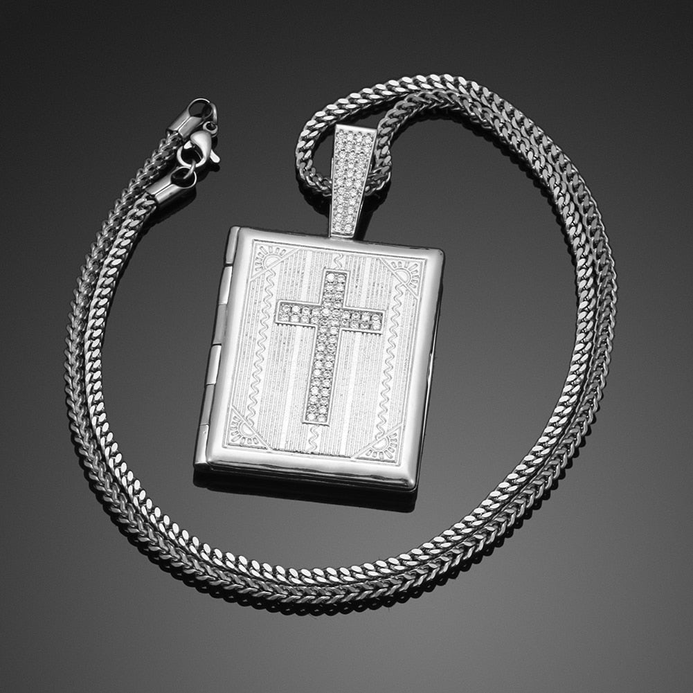 Personalized Photo Medallion Necklace Cross Locket Pendant- Bible Cross Necklace