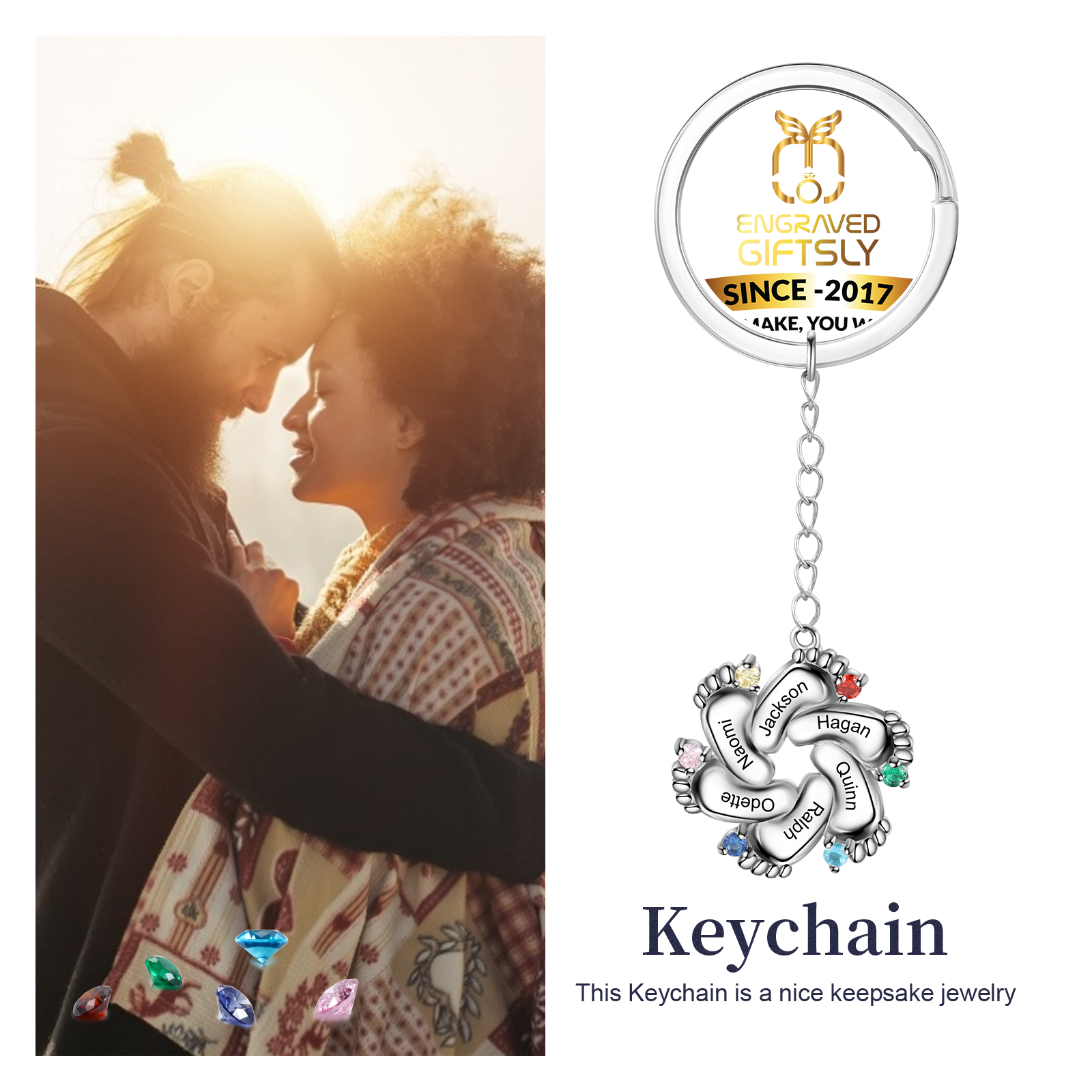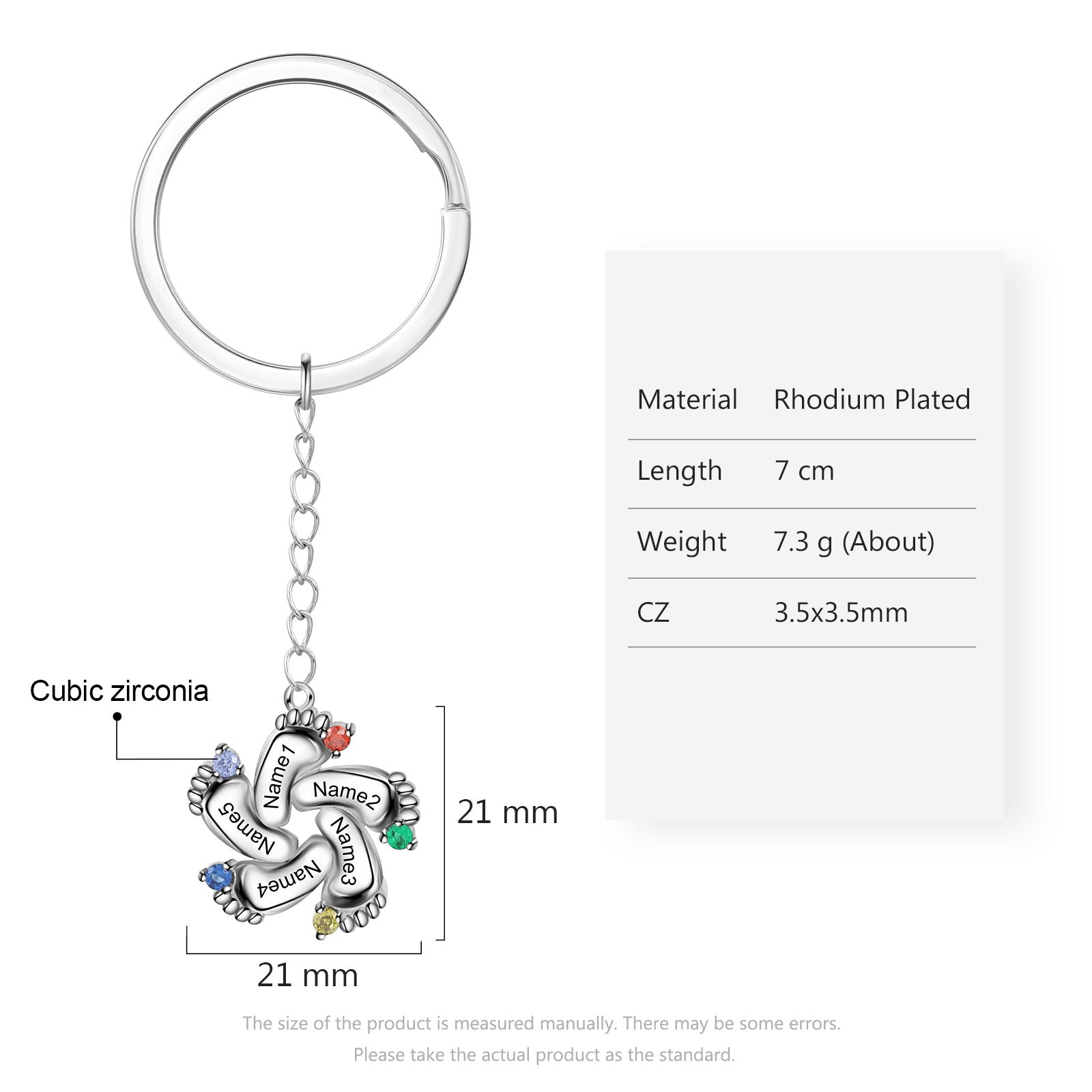 Custom Name Baby Feet Engraving Keychain with Birthstone